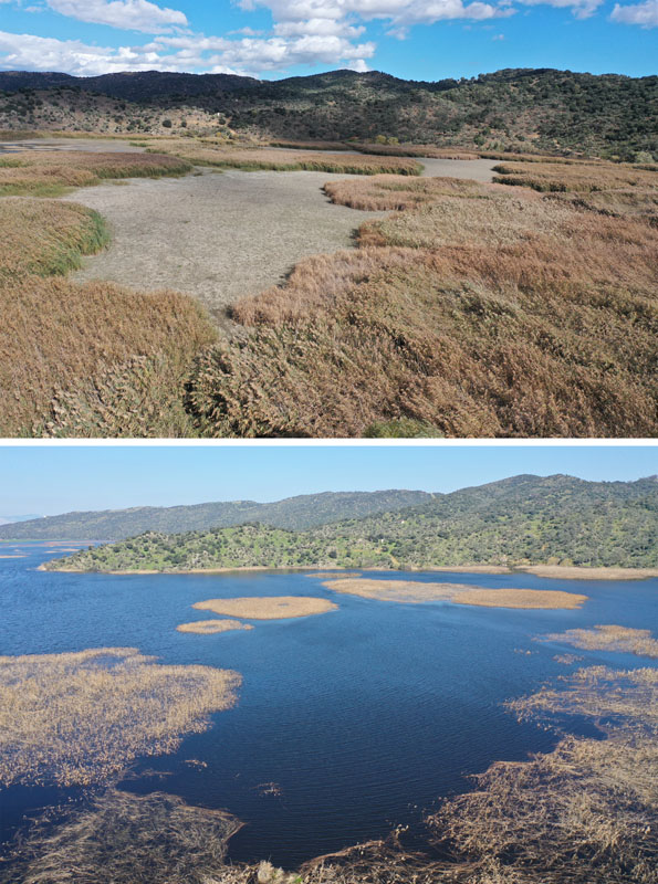 Geçtiğimiz yıl iklim değişikliğine bağlı kuraklık nedeniyle büyük ölçüde kuruyan göl, özellikle 2025 sonbaharında kritik seviyelere gerilemişti. Ancak 2026 yılının ilk iki ayında Söke’de metrekareye düşen 662,4 kilogram yağış, gölün su seviyesini belirgin biçimde yükseltti. Nehir debisinin artması ve taşkınlarla birlikte suyun çevredeki tarım arazilerine kadar ulaşması, bölgede deniz görünümlü geniş bir su yüzeyi oluşturdu.