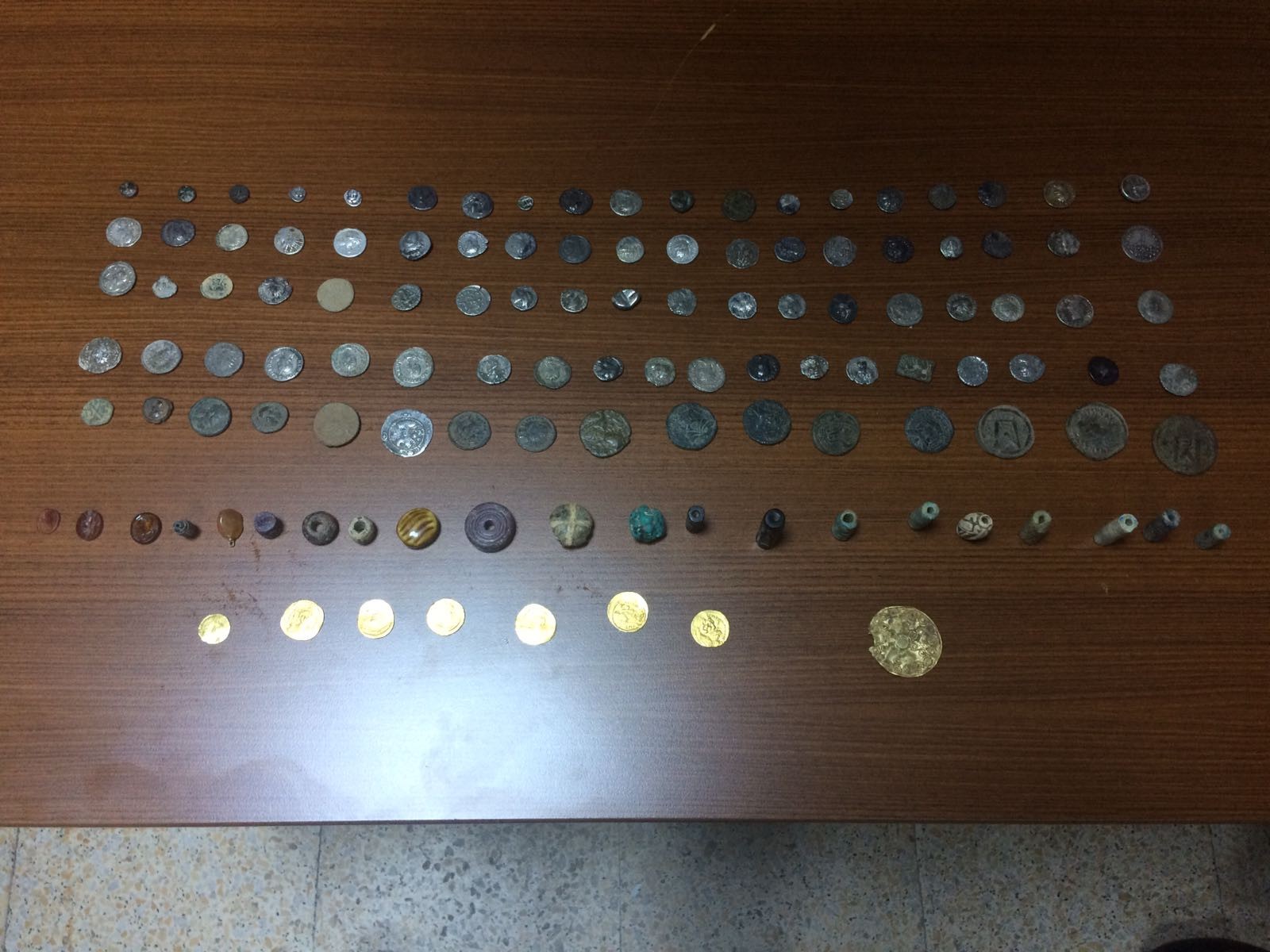 Kaldığı otel odasında gözaltına alınan şahsın üst aramasında 92 gümüş sikke, 8 altın görünümlü sikke ve üzerinde işleme bulunan 21 taş ele geçirildi.