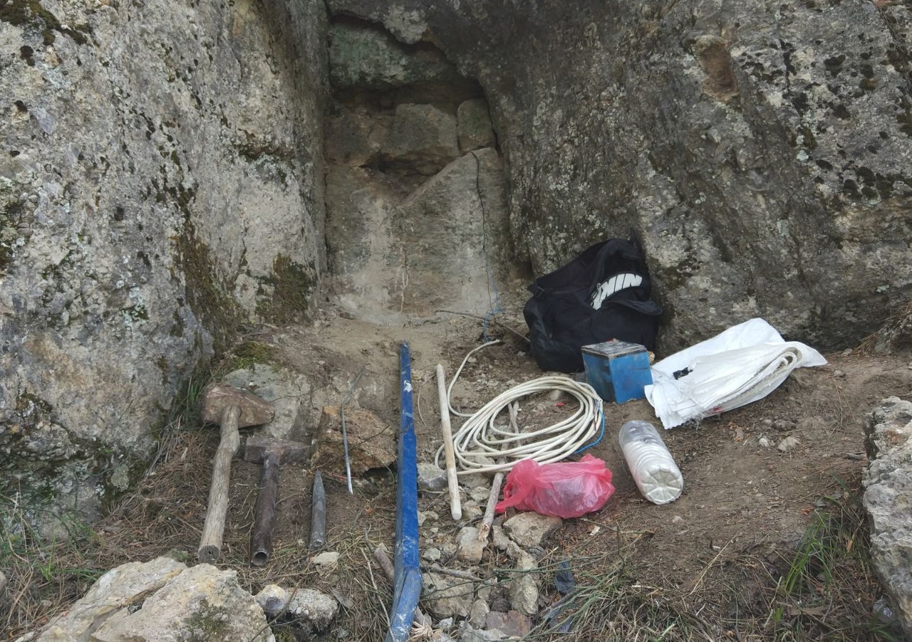 Şüphelilerin yanında akü, yaklaşık 1 kilogram el yapımı patlayıcı madde, manivela demiri, balyoz, çekiç, 15 metre uzunluğunda kablo, demir şiş ve ahşap çubuk bulundu.
