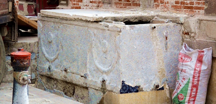 Edremit'te restorasyonu yapılan Pazarlık Camisi'nin şadırvanından sökülen fayansların altında lahiti ortaya çıkardı
