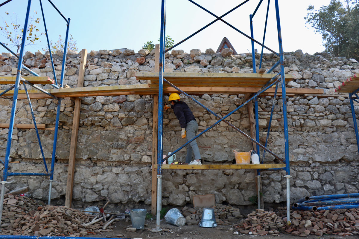 Arkeolojik açıdan oldukça hassas olan bölgede önce yoğun bir temizlik çalışması yapıldı; yaklaşık üç kamyon dolusu atık, alanın yapısal güvenliğini tehdit eden teras duvarlarından uzaklaştırıldı. Ardından, basit onarım ve konservasyon süreci başlatıldı. Şahin, “Teras duvarlarının mukavemetini artırmak için dolgular kullandık, bazı zayıf noktalara metal taşıyıcılar yerleştirdik. Derz dolguları ve tahkim işlemleriyle yapının geçici onarımı tamamlanmak üzere” ifadelerini kullandı.