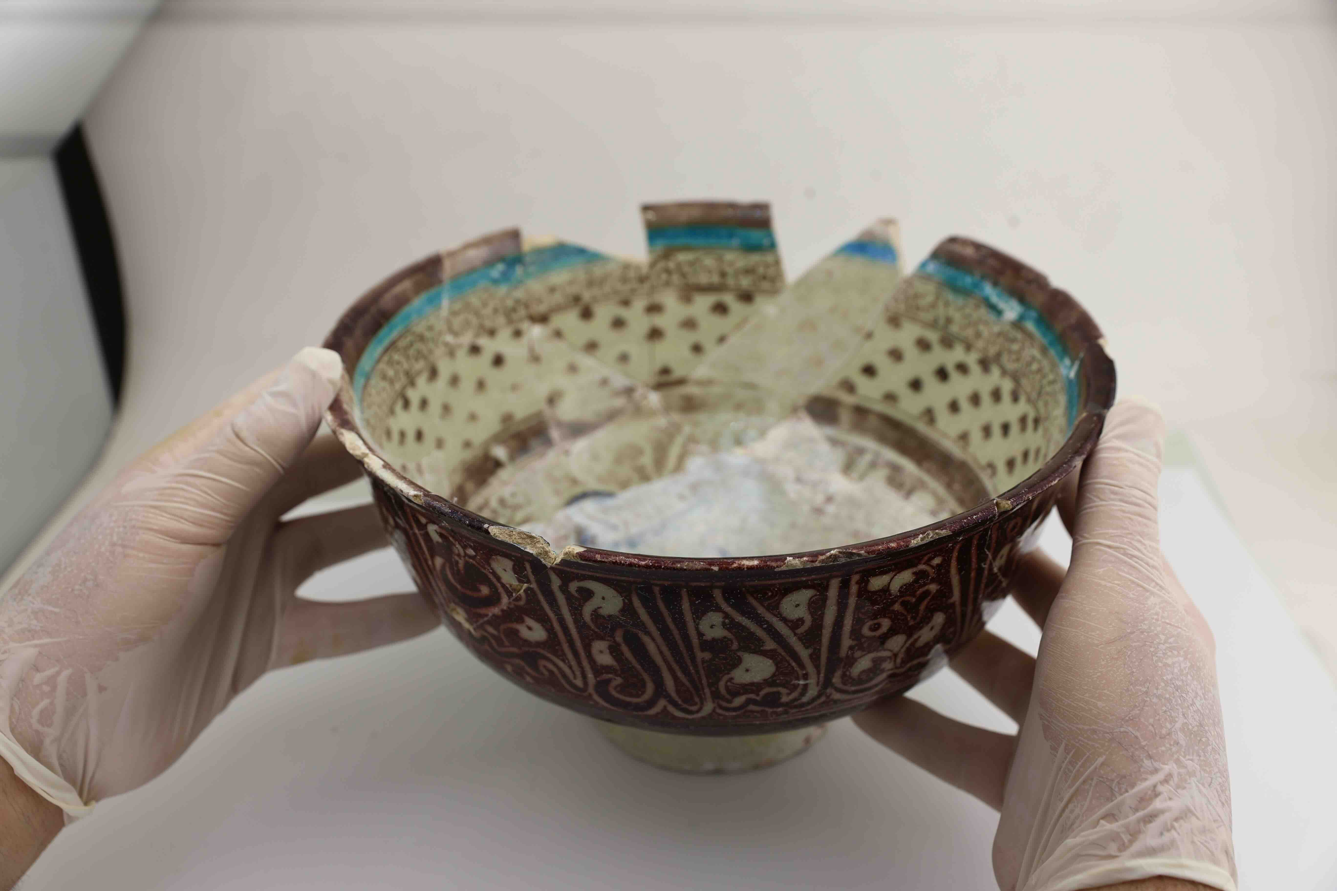 Harran Medresesi'nde yapılan kazı çalışmalarında ilk kez fırınlama tekniğiyle yapılmış tek parça halinde seramik bir kab ortaya çıkarıldı.