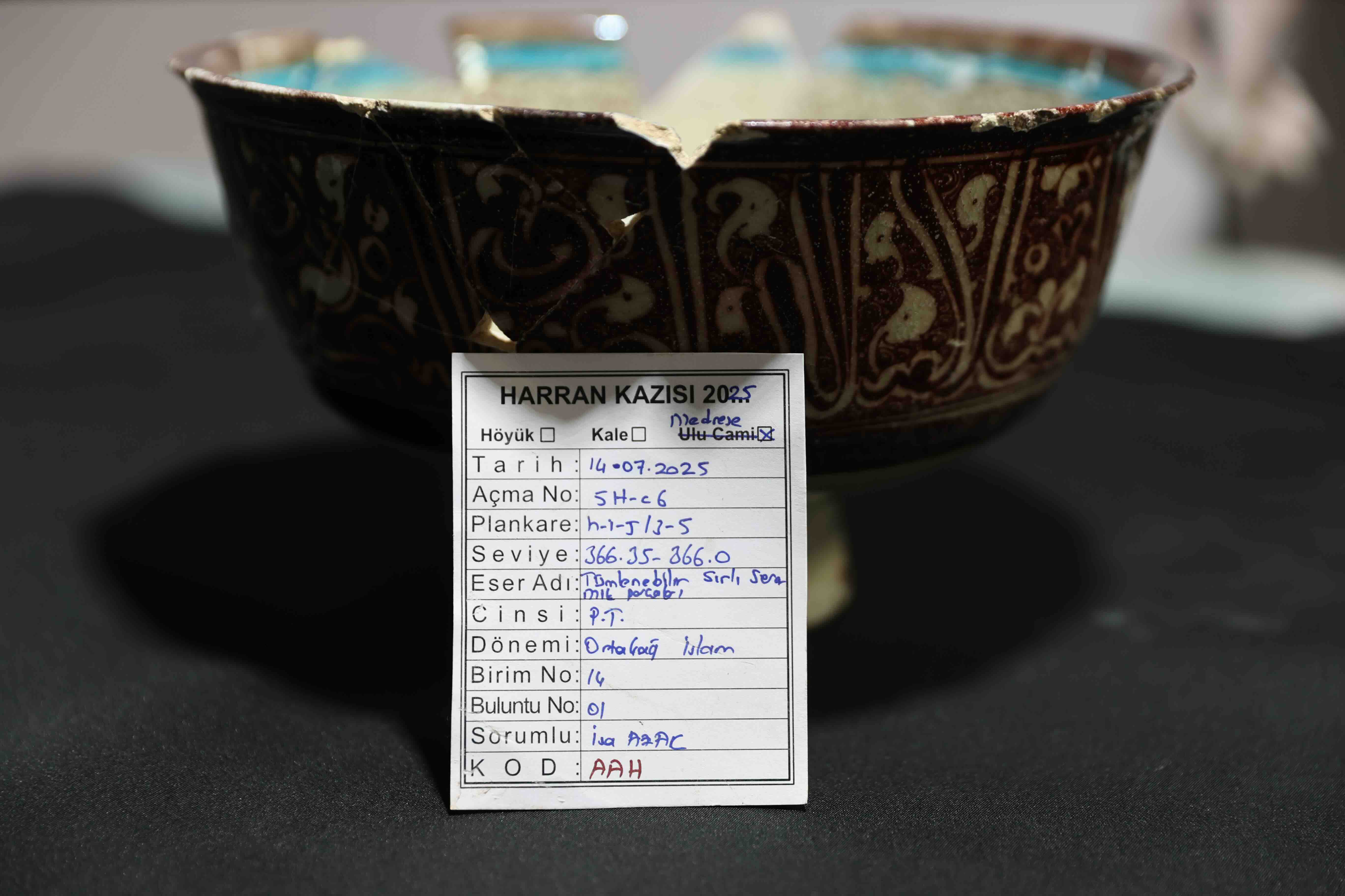 UNESCO Dünya Miras Geçici Listesi'nde bulunan dünyanın en eski yerleşim bölgelerinden Harran Ören Yeri'nde, Orta Çağ döneminden kalma yaklaşık 9 asırlık seramik tören kabı ortaya çıkarıldı.