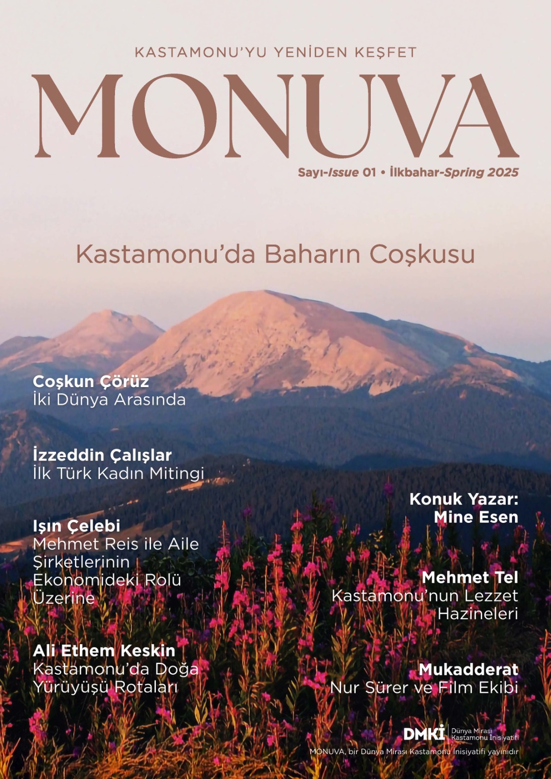 Monuva’nın ilk sayısı olan bahar edisyonunda; Kastamonu’da bu mevsimde yapılacaklar, ziyaret rotaları, Kastamonu’dan çıkmış önemli aile işletmeleri, yöre lezzetleri gibi konular var. Derginin bu sayısında Taşköprülü Mehmet Usta’nın 1904 yılında imal ettiği piyanoyu da, kentte düzenlenen Türkiye’nin ilk kadın mitingini de, Mukadderat filminin ekibi ile yapılan kapsamlı bir röportajı da değerli yazarların kaleminden okumak mümkün.