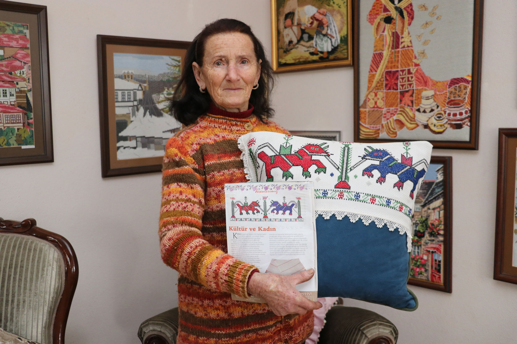 Üç çocuk ve 2 torun sahibi Vasfiye Tayat, yıllarca işlediği örgülerle hem aile ekonomisine katkı sağladığını hem de sayısız eserlerinin kataloglarda yer aldığını söyledi.