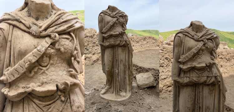 Denizli’deki Laodikeia Antik Kenti’nde yürütülen kazılarda yaklaşık 2 metre uzunluğunda mermer Athena heykeli bulundu. Batı Tiyatrosu sahne yapısında ortaya çıkarılan eser, Augustus Dönemi’nin klasik sanat anlayışını yansıtmasıyla dikkat çekiyor.