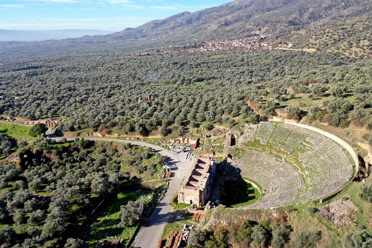 Batı Anadolu’nun iyi korunmuş antik yerleşimleri arasında yer alan Nysa Antik Kenti, iki yakalı vadi üzerine kurulmuş özgün planlamasıyla dikkat çekiyor. Antik çağda gymnasium, tiyatro, stadion, agora, meclis binası ve geniş caddeleriyle bir eğitim-kültür merkezi olarak anılan kent, aynı zamanda Akharaka Tapınağı ve nitelikli kütüphane yapısıyla öne çıkıyor. Antik coğrafyacı Strabon’un burada eğitim aldığı ve kenti “iki yakalı” olarak tanımladığı biliniyor. Yaklaşık 2300 yıllık geçmişe sahip Nysa, zeytinlikler arasından yükselen dokusuyla arkeolojik sürekliliğin güçlü bir örneğini sunuyor.