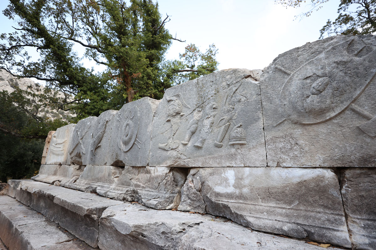 “Birinci anıt mezarda insan boyutlarında ‘dans eden kadınlar’ kabartmaları yer alıyor. Bu figürlerden birinin başını kazı sırasında yıkıkların arasında bularak müzeye gönderdik. Ayağa kaldırıldığında, tiyatro maskeleri, eroslar, nike figürleri, aslan başları ve zengin bezemelerle süslü etkileyici bir mezar mimarisi ortaya çıkacak.”