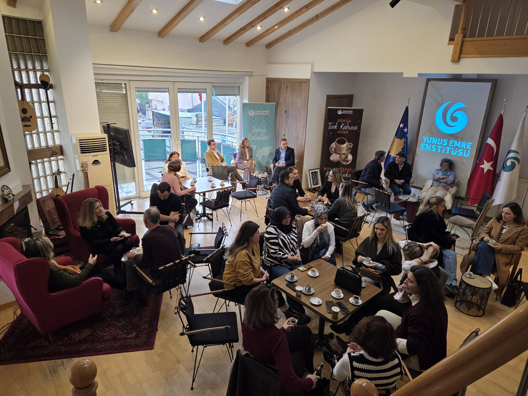 Saraybosna Üniversitesi Felsefe Fakültesi’nden Dr. Tuna Uysal, Türk kahvesinin Osmanlı’dan günümüze uzanan kültürel yolculuğunu, hazırlama tekniklerini ve kahvenin 2013’te UNESCO Somut Olmayan Kültürel Miras Listesi’ne kabul edilme sürecini ele aldı. Etkinlik kapsamında geleneksel yöntemlerle hazırlanan Türk kahvesi ve baklava ikram edildi.