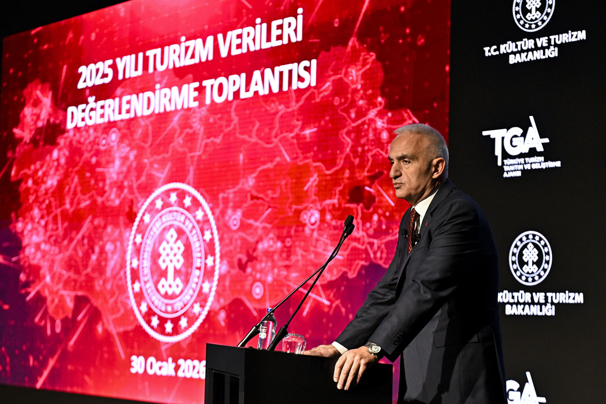 Kültür ve Turizm Bakanı Mehmet Nuri Ersoy, Atatürk Kültür Merkezi’nde (AKM) düzenlenen basın toplantısında Türkiye’nin 2025 yılı turizm performansını ve 2026 hedeflerini kamuoyuyla paylaştı. Küresel ölçekte ekonomik ve siyasi belirsizliklerin yoğunlaştığı bir dönemde açıklanan veriler, Türkiye’nin krizlere karşı geliştirdiği yönetsel refleksin ve stratejik planlamasının somut çıktıları olarak değerlendirildi.