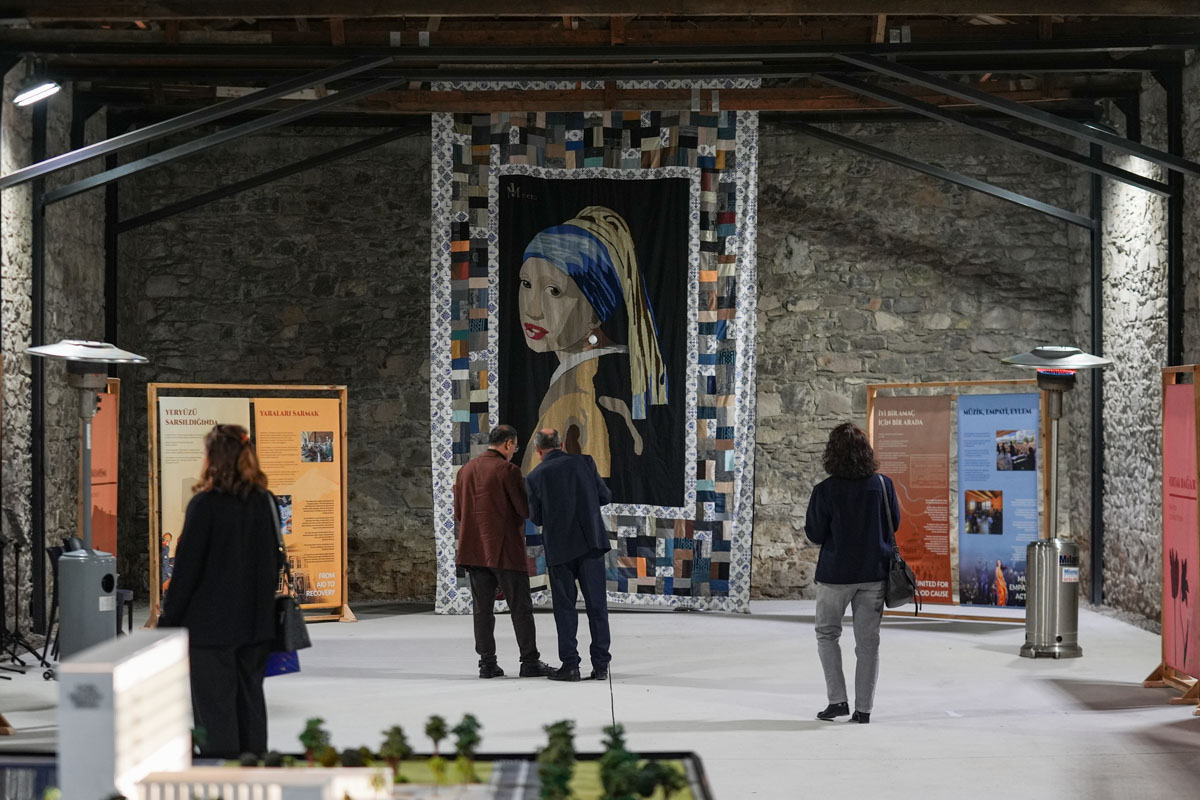 Serginin odak noktası, ünlü Hollandalı ressam Pieter de Hooch’un 1667 tarihli bir tablosunda yer alan Bergama halısının, “Ölümsüz İlham Perileri” projesi kapsamında 2025 yılında yeniden dokunan örneğidir.