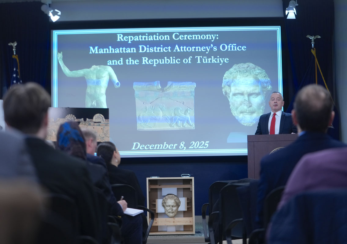 New York Manhattan Bölge Savcılığı’nda düzenlenen törenle, Türkiye’den kaçırılan ve değeri 8 milyon doları aşan 41 tarihi eser Türkiye’ye iade edildi. Ortak soruşturma süreçlerinin ürünü olan bu eserler, kültürel mirasın korunmasına yönelik uluslararası iş birliğinin somut bir göstergesi olarak değerlendirildi. Yetkililer, operasyonların iki ülke arasındaki kalıcı iş birliğini güçlendirdiğini vurguladı.